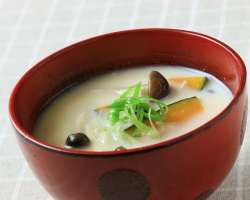 【所要時間:10~20分】カボチャとキノコの豆乳味噌スープ