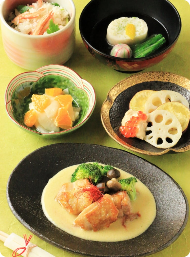 丁寧にひいたお出しで作る一汁三菜メニューは、季節の食材を活かし、食べ合わせも工夫したレシピです。その食材が身体にいい理由、無駄のない食材の使いまわし方、アレンジ方法など知識とレパートリーが自然に増えるようにお伝えしています。和食を中心に中華や洋食も取り入れて、忙しい人の食卓を豊かにする作り置き料理や松花堂弁当もコツを知れば、おもてなしシーンに花を添えます。